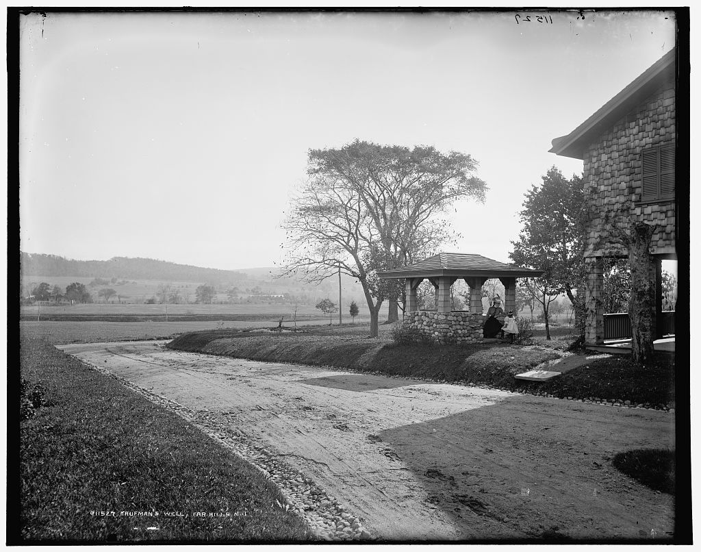 As soon as they started to live there, through Grant Schley’s efforts, the Delaware, Lackawanna, and Western Railroad Company built an extension line from Bernardsville to Gladstone. Service began in 1890. A train station was constructed at Far Hills…” And the station immediately became the nucleus of a brand‑new village. Within a few years, David Dumont opened a coal and lumber business and became a station agent; L.V. Ludlow opened a meat market and served as the first postmaster; Mark Lance and Richard Potter opened a general store; William Parks set up a blacksmith shop, and Charles Welsh opened a livery stable.