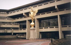 The Spirit of Communication was created in 1916 by sculptor Evelyn Beatrice Longman for AT&T. In front of the Basking Ridge Campus, and now in Dallas.