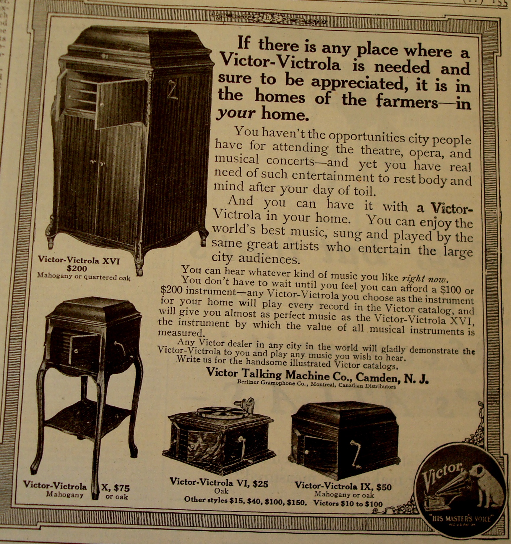 Paterson for its silk mills powered by the Great Falls, Trenton for iron & steel under the slogan “Trenton Makes, The World Takes,” and Camden for sound technology, where the Victrola, which is an iconic early 20th-century brand of phonograph (record player) featuring an internal wooden horn, designed to look like furniture rather than machinery, was manufactured.